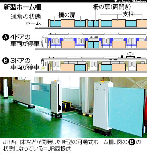 3ドア車&4ドア車に対応、新型転落防止柵開発 JR西日本など <asahi.com 2011/01/07>を添削